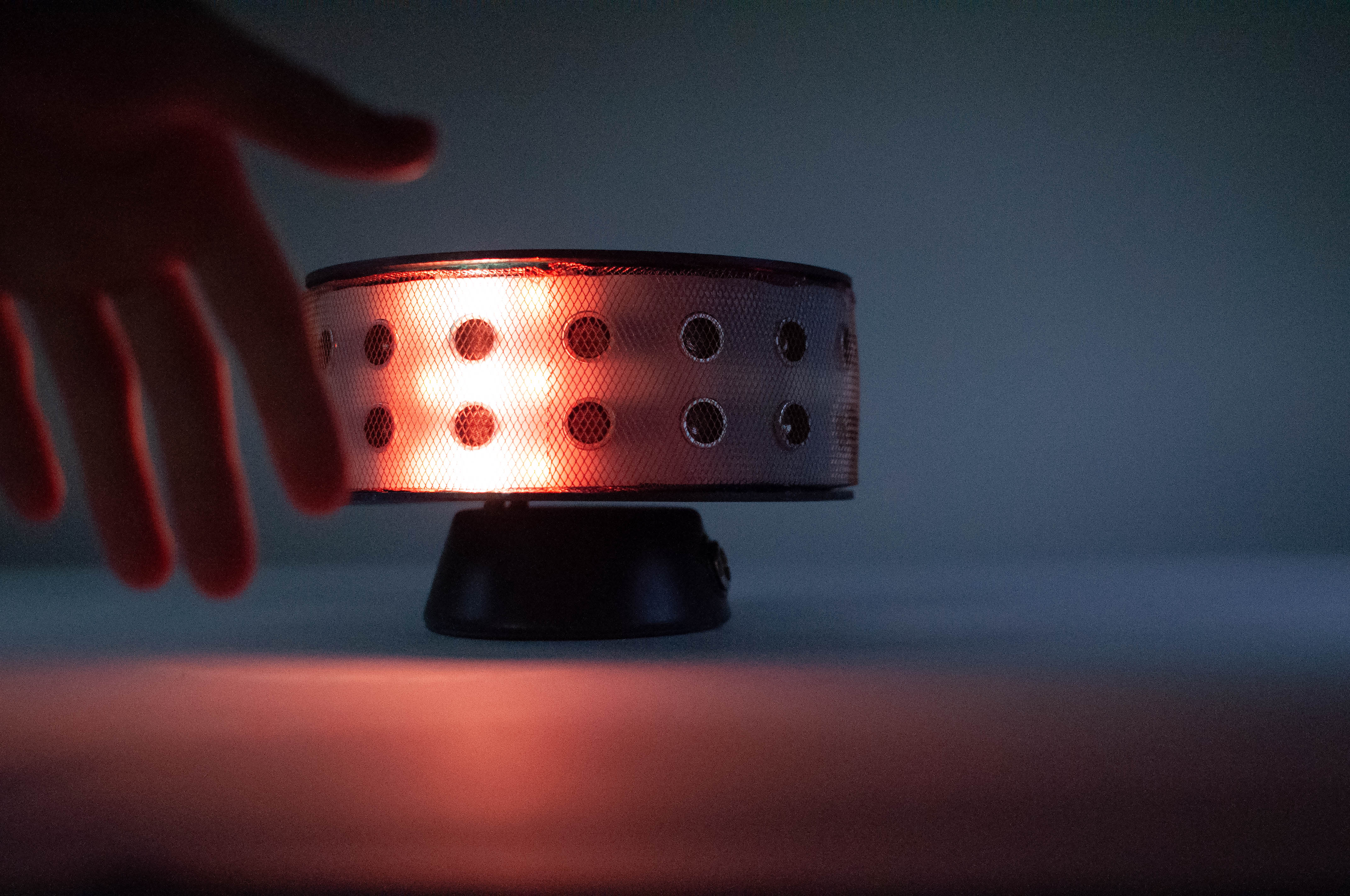 Ember is an interactive tabletop centerpiece light inspired by fire, that reacts to nearby people and objects with a warm glow.